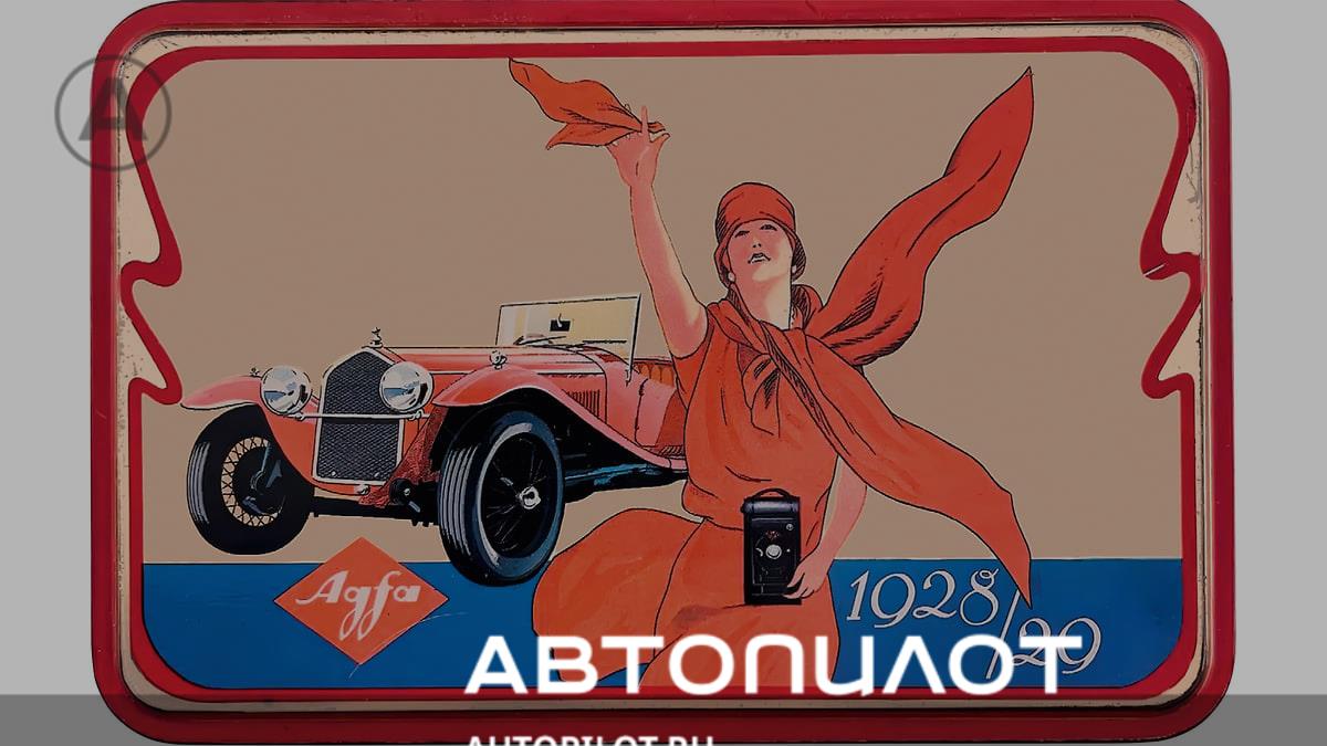 Рисовавший автомобиль художник изобразил модель 6C 1750 очень точно, хотя и без логотипа фирмы-производителя. Зачем он нужен, если коробочки заказала Agfa, а не Alfa Romeo. Казалось бы, для чего вообще тут еще и автомобиль, но такая ненавязчивая реклама ведь не только про фотоаппарат и пленку, а еще и про сюжеты, которые можно снимать. Автомобильные гонки и тогда, в 1928 или 1929 году, не уступали в популярности сегодняшней Формуле 1, а может быть, и превосходили, причем безо всяких телевизоров и интернета, которых тогда не было. Когда проходил Гран-при, то люди собирались у радиоприемников и, даже не видя перед глазами ни трассу, ни автомобили, страстно и эмоционально болели за любимых гонщиков.