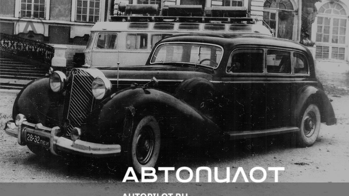 Заказчиком этого огромного пульман-лимузина Mercedes-Benz 770K, оснащенного двигателем объемом 7,7 л. с компрессором, был кто-то из бонз фашистской Германии, но после 1945 года автомобиль закономерно стал трофеем и попал в гараж ленинградского УНКВД. Работавший на нем шофером Николай Кондаков не захотел расставаться с полюбившимся «Мерседесом» и после списания из гаража выкупил его в частную собственность.