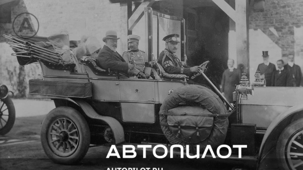 Император Николай II и правитель Гессен-Дармштадта великий герцог Эрнст-Людвиг на заднем сиденье автомобиля Opel. Город Фридберг, 1910 год