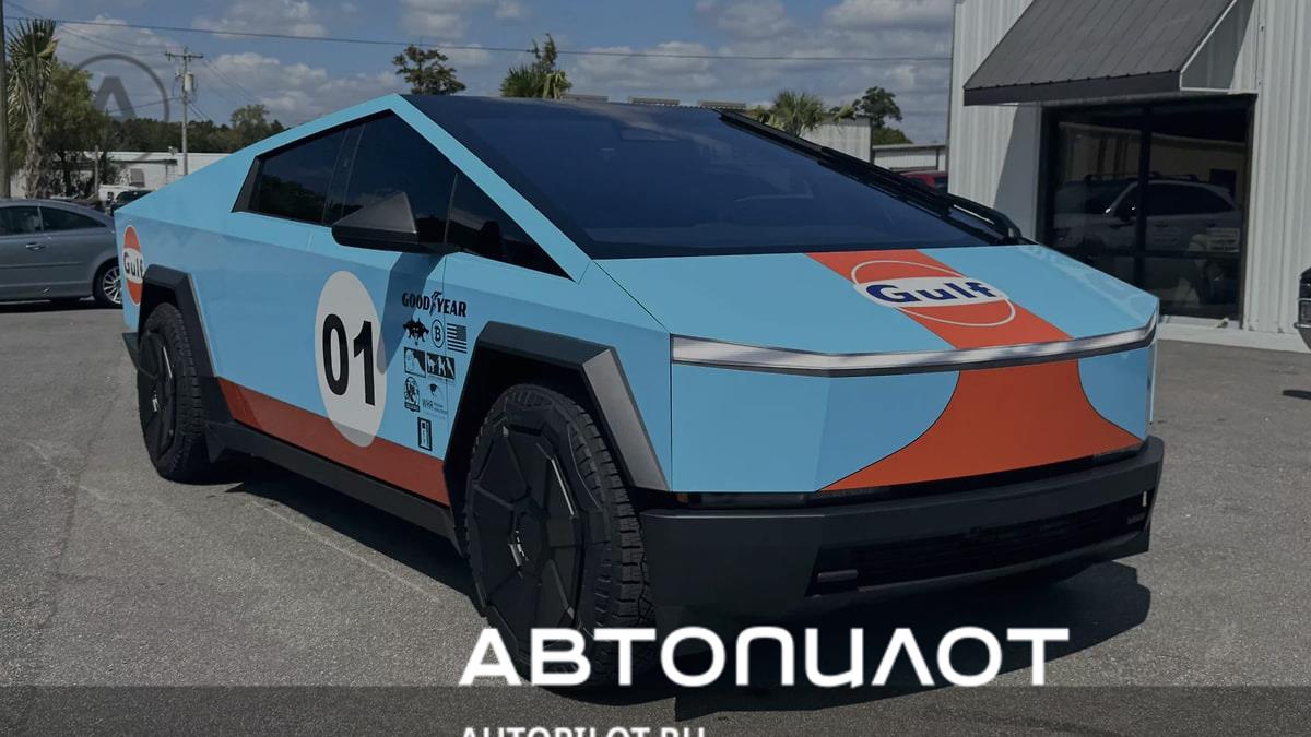 В США на торги выставили необычный Tesla Cybertruck. Электрический пикап выполнен в известной сине-оранжевой ливреей Gulf Racing, которая украшала культовые гоночные машины, вроде McLaren F1 GTR, Porsche 917 и Ford GT40.